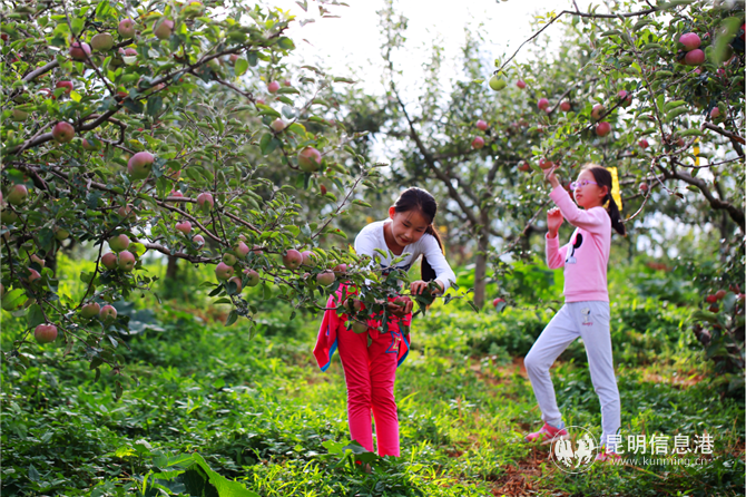 昆明信息港讯 记者杨雁 目前正是苹果大量上市季节,安宁禄脿有一个以休闲、观光、采摘、旅游、美食为一体的立体生态种养殖业的现代农业庄园——潘茂野趣庄园,这里的早、中、晚熟苹果已相继成熟,缀满枝头。9月底前还有一个活动,即39.9元的套餐可有2成人2儿童进入庄园体验采摘、游玩的乐趣,除了可以在苹果园内自己采摘吃个饱外,走时可以带走2公斤苹果和2公斤鱼,这么大的福利,赶紧上路吧。