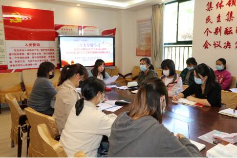 多维触角“思”,将党的二十大精神“想清楚”。党支部把集体学习和自学结合起来,把“大学习”和“大讨论”结合起来,把座谈和交流结合起来,逐字逐句研读。领导干部带头通读全文,不断章摘句,坚持逐篇研读、逐句琢磨,做好读书笔记和专题发言。同时分办园点、备课组研讨,每位党员干部撰写心得体会,从不同的侧重点出发,以理论与实践相结合的方式,对“好经验”“好点子”进行了多维度交流。在各类讨论中,老师们积极发言,相互探讨,引发思维的碰撞,享受了研讨的大餐,醍醐灌顶,受益匪浅,在头脑风暴中博采众长,共同提高,收获成长。推动学习贯彻党的二十大精神向广度和深度扩展,真正把党的二十大精神学深悟透。