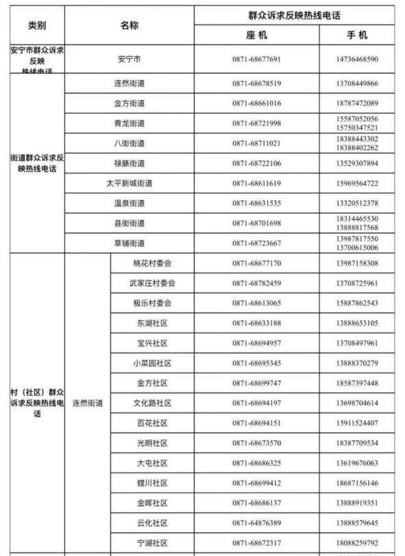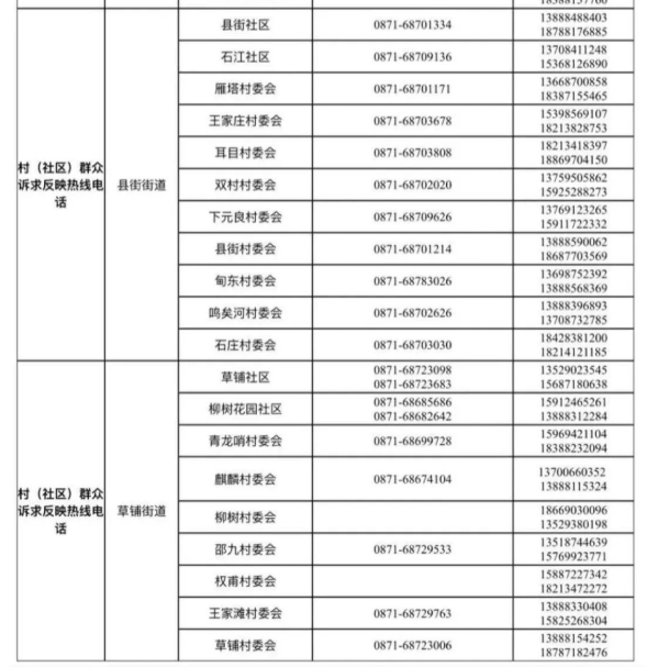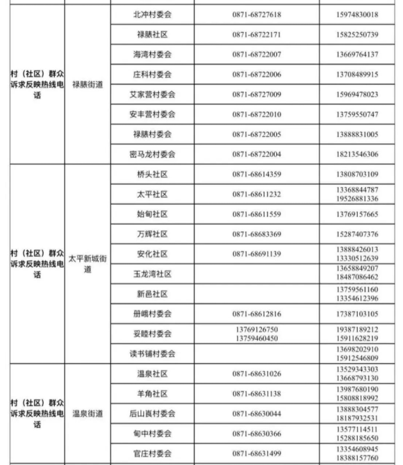 2.各街道、各村(社区)疫情防控群众诉求反映热线(详见附表)。